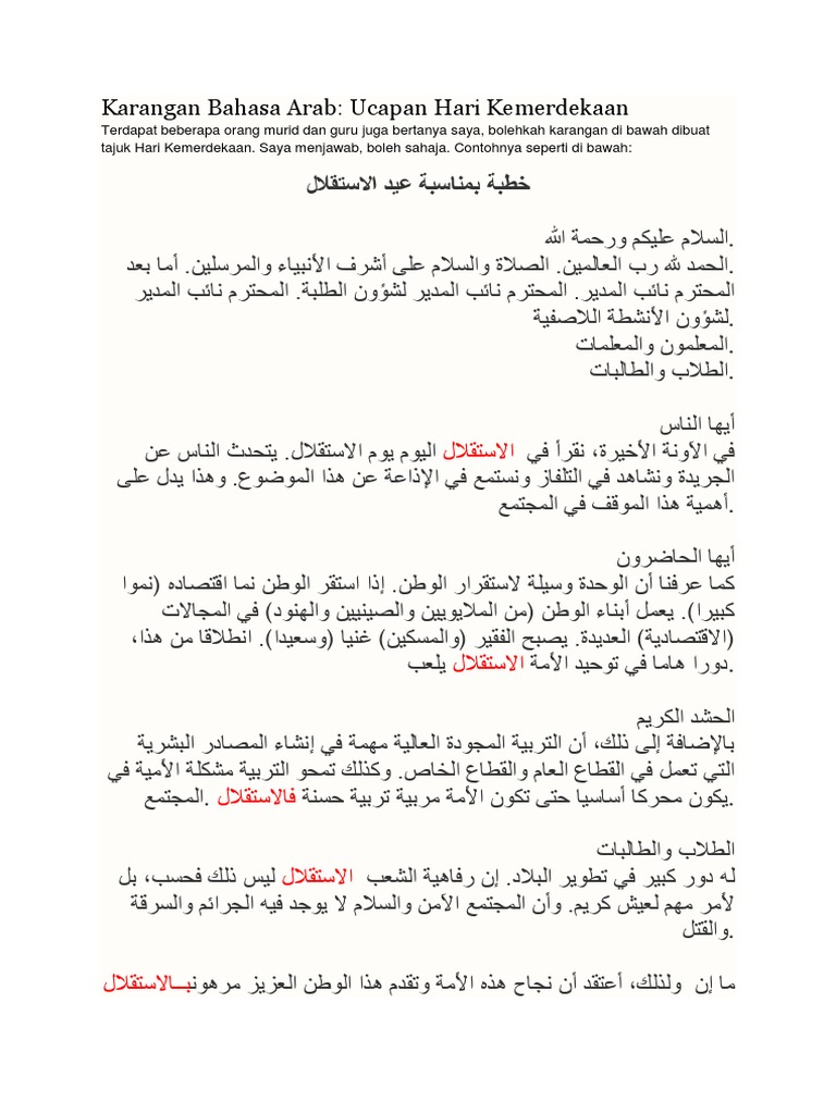 Karangan Bahasa Arab Hari Kemerdekaan Pdf